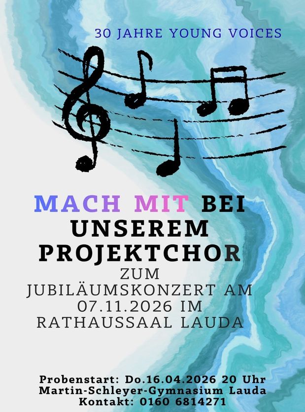 Zu diesem besonderen Anlass bieten die „Young Voices“ einen Projektchor an. Interessierte Sängerinnen und Sänger sind herzlich eingeladen ab dem 16. April das neue Programm zusammen mit dem Stammchor einzustudieren und beim Konzert im November mitzuwirken. Der Chor freut sich auf jede neue Stimme.